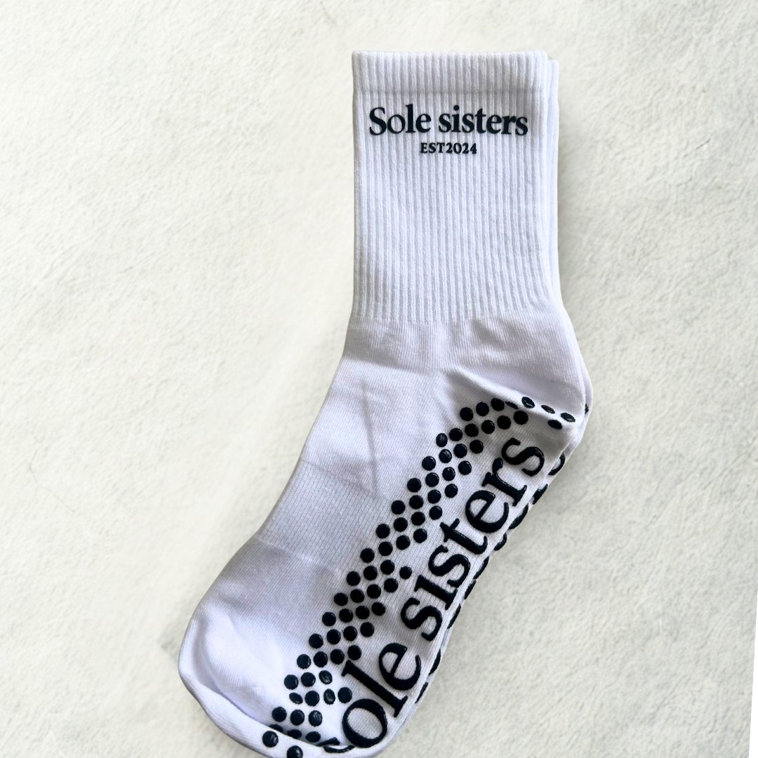 Slightly off, still totally grippy. We printed ‘Sole sisters’ (lowercase), but they work just like the rest. If you don’t mind the tiny typo, they’re a steal.